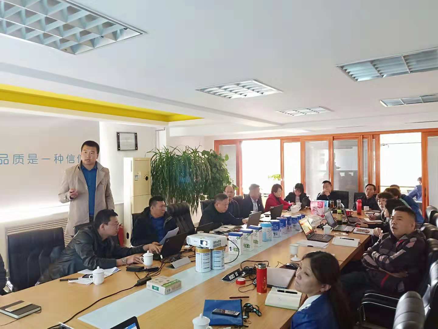 為更好對2018三季度經營運行分析,制定下一階段經營措施,確保年度目標任務的全面完成。10月15日,集團公司在奶粉工廠會議室召開2018年三季度經營分析會。集團會議由常務副總經理唐勇主持,董事長鄭俊懷、集團副總經理尤爾根、集團財務副總監(jiān)財音吉雅、奶粉事業(yè)部總經理鄭強、液態(tài)奶銷售事業(yè)部總經理趙元亮、牧業(yè)事業(yè)部總經理李文博及集團各部門負責人等參加會議。